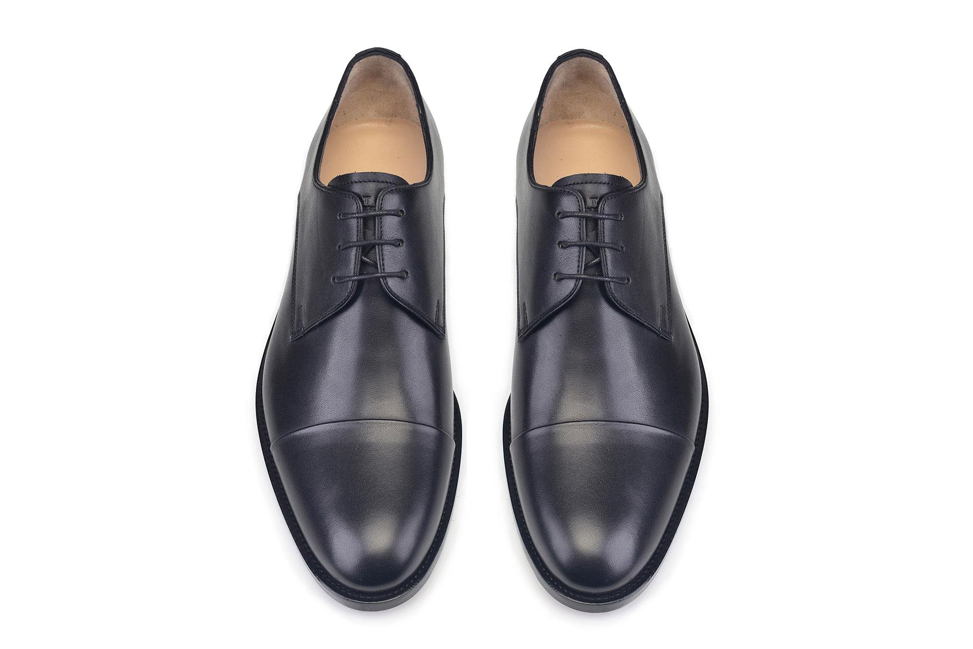 Yüksek kalite antik deri üst kısım 1.Sınıf Deri iç astar ve iç taban Yazlık, 4 bağcıklı derby ayakkabı Hakiki kösele taban, kauçuk ökçe kapağı Hafif sivri burunlu kalıp 29 mm yüksekliğinde 900 gr ağırlığındadır